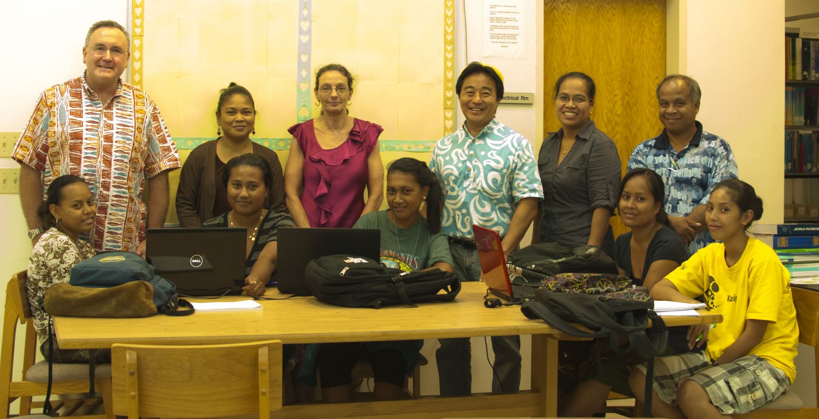 President Joseph Daisy, Vice President for Instructional Affairs Mariana Ben Dereas, Dean of Academic Programs Karen Simion, Director of Learning Resources Center Jennifer Hainrick Helieisar, Librarian Bruce Robert, Professor Dana Lee Ling, Webmaster Shaun Suliol, and Development and Community Relations staff Juan Paulo Santos met with Senator Wakai on behalf of the college.